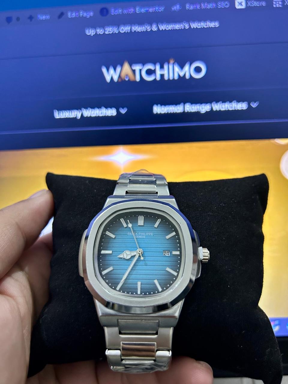 Experience timeless elegance with this Patek Philippe Nautilus style men’s watch, featuring a stunning blue textured dial, durable steel strap, sleek case design, and date display. Ideal for office and formal wear—delivery available across Pakistan.